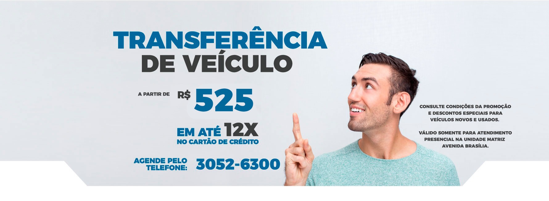 Transferência de veículo a partir de R$ 450,00 em até 12X no cartão de crédito. Agendamento pelo telefone: 3052-6300